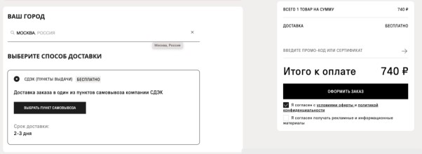 Как уже говорилось выше, в России самовывоз – это с большим отрывом самая популярная форма получения заказа. По разным данным, до 80% заказов забираются из ПВЗ. В таких условиях обеспечить возможность комфортного самовывоза – важнейшая задача любого интернет-магазина. Хотя, несмотря на все это, находятся продавцы, которые отказались от самовывоза (например, Мегамаркет), к продавцам косметики это не относится. У всех проанализированных нами магазинов есть возможность забрать свой заказ в ПВЗ. Другое дело, что количество этих пунктов может быть явно недостаточным, но об этом мы говорили в предыдущих статьях.